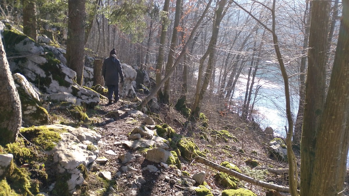 Still a way to go down river now, very foresty and meadowy with glimpses of the river until you reach the Big Arch, (Veliki Most)..