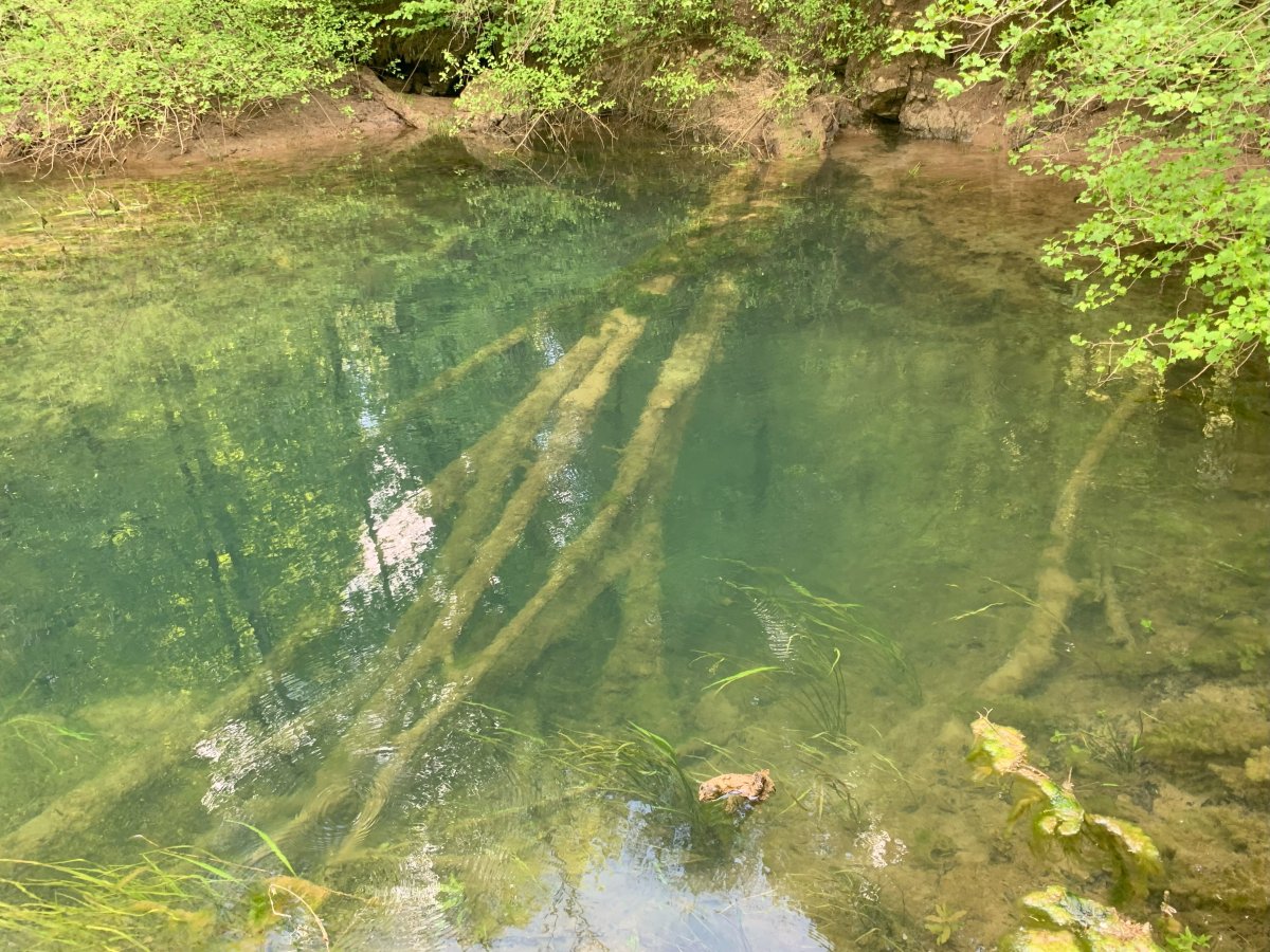 The path continues over the rocks at the back of the spring (Izvir) over to the other side here. Maybe there will be water, maybe not, but this is another very beautiful spot..