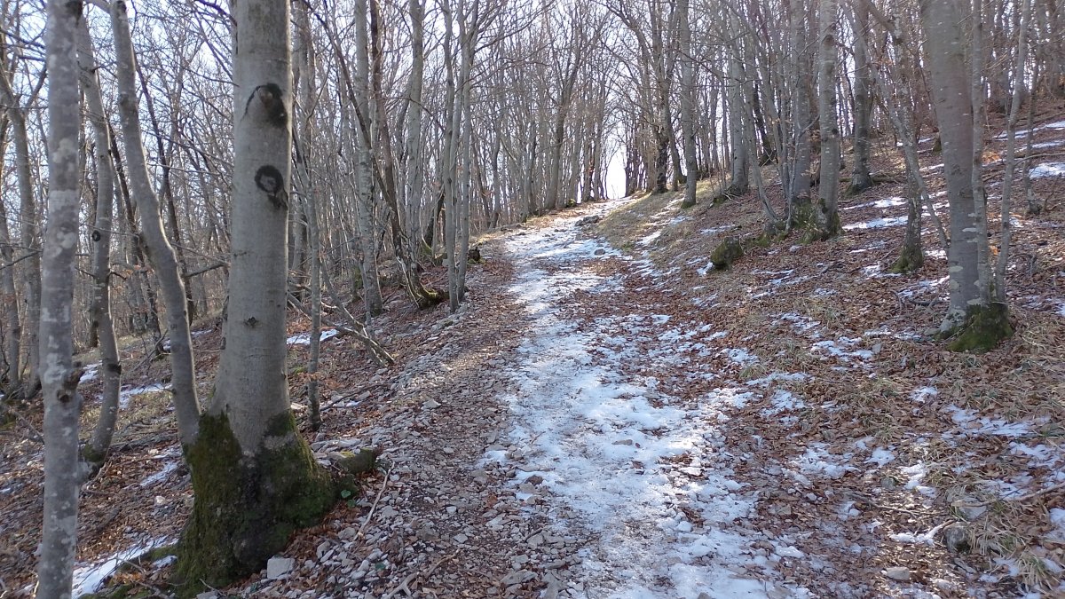 From the main car park you can actually see the tip of the top of Slavnik at the end of a chain of steep forested hills that are right in front of you on the other side of the railway line and you will several get glimpses of this final peak as you pop in and out of the forest sections..