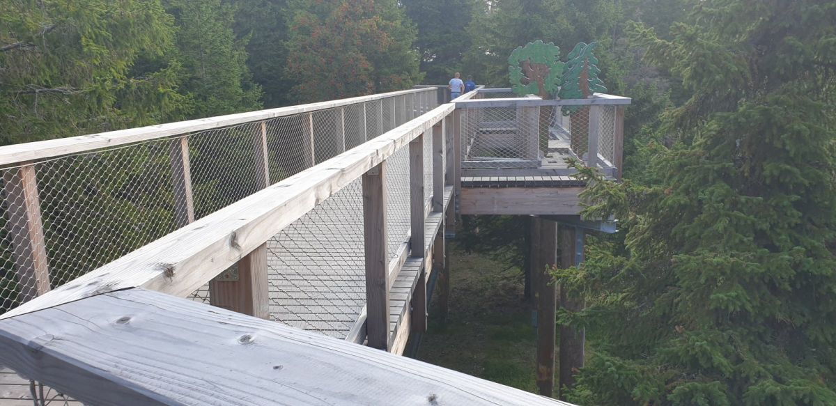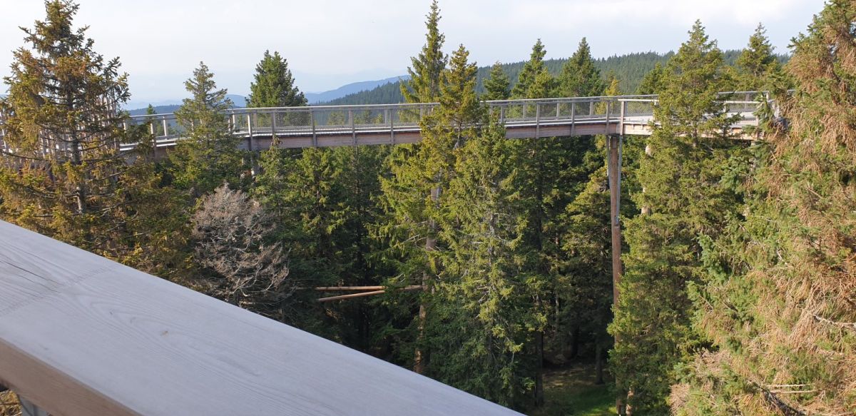 The only other Tree top walks we had done before were in Singapore and Australia and the Aussie one had been very high up and on a walkway best described as a circus wire! This Rogla walkway does go very high into the tree tops, but it is also designed as a nature learning experience for kids, so the walkways are wide and solid wood.. nothing to be scared about.