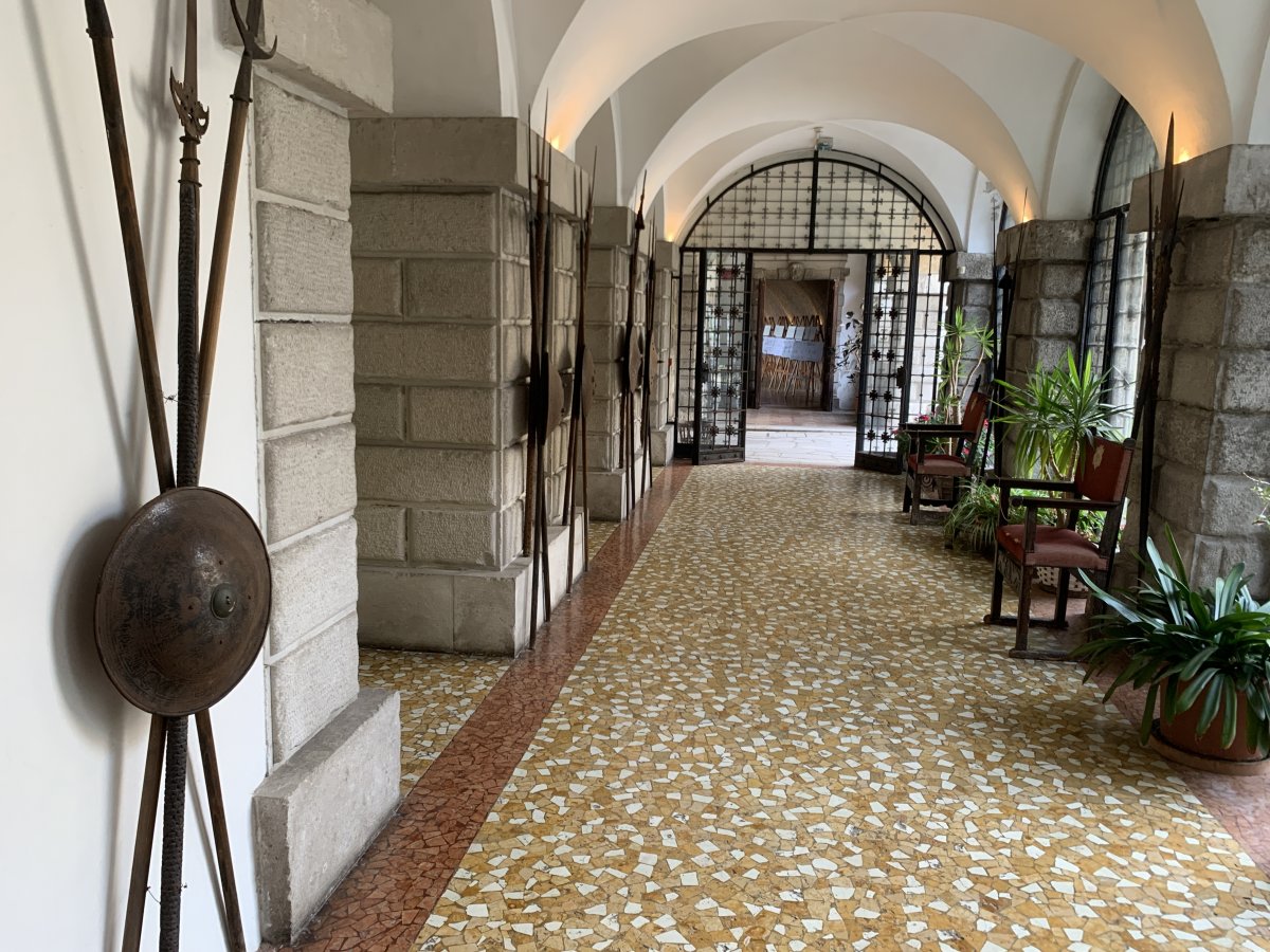 There are collections of marble eggs in cabinets, a library that would not look out of place in Hogwarts and shields & weapons hanging from the walls like Christmas decorations..