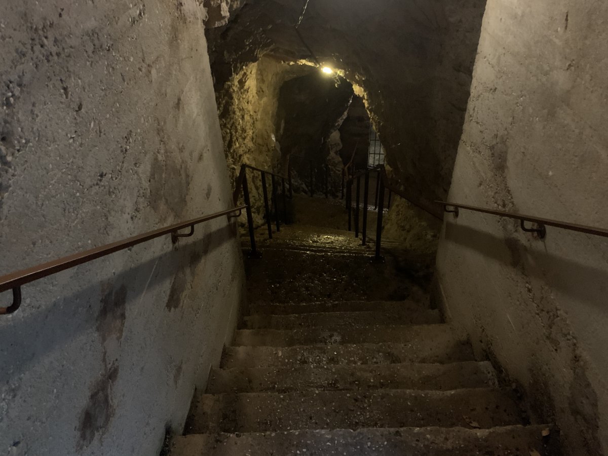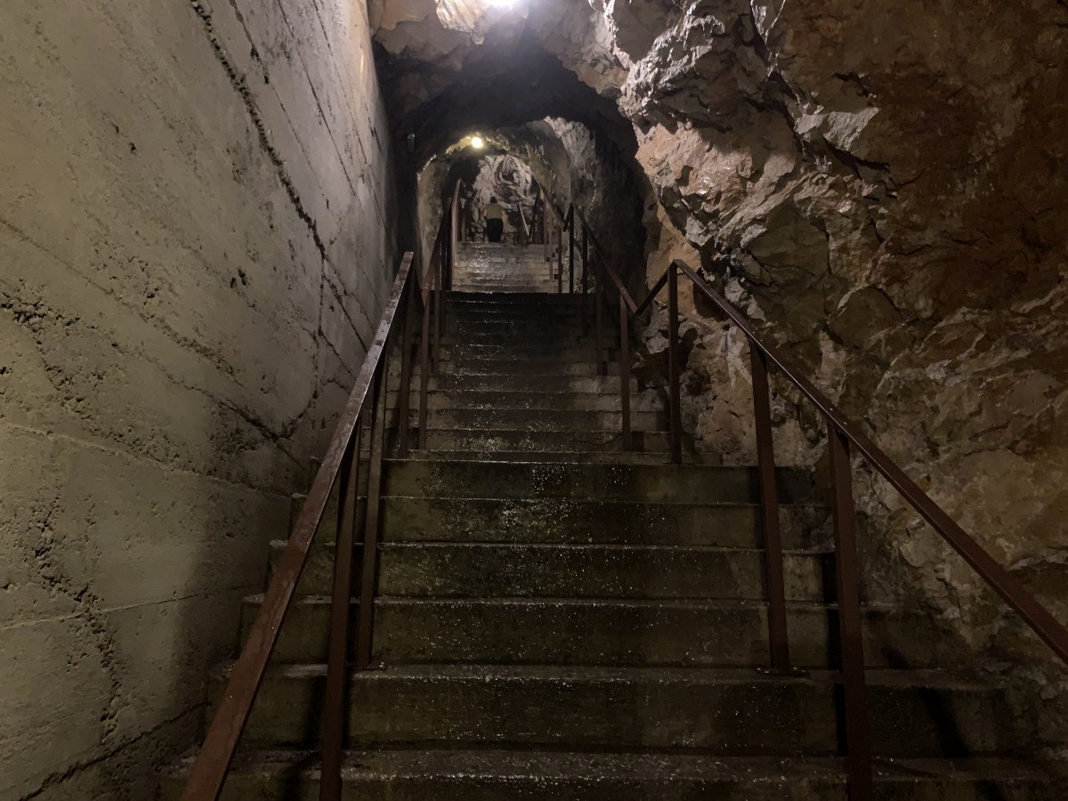 You go around a corner and see even more steps disappear into the depths of this bunker, that you now realise has been dug deep into the side of this high cliff.